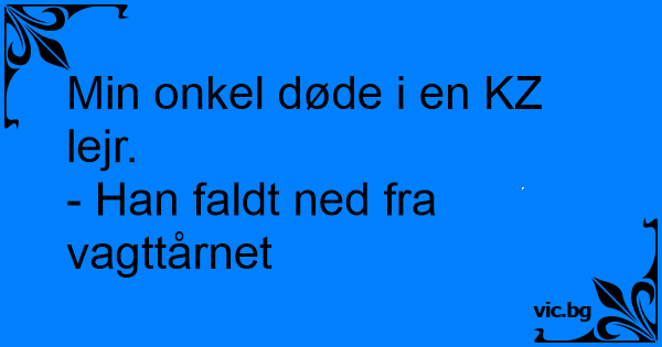Min farfar døde i Auschwitz. - Nej, hvor forfærdeligt ! - Ja, han faldt ned fra vagttårnet.