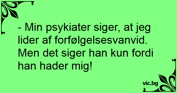 - Min psykiater siger, at jeg lider af forfølgelsesvanvid. Men det siger han kun fordi han hader mig!