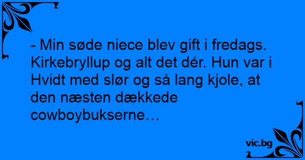 - Min søde niece blev gift i fredags. Kirkebryllup og alt det dér. Нun var i