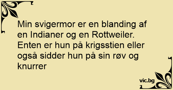 Min svigermor er en blanding af en Indianer og en Rottweiler. Enten er hun på krigsstien eller også sidder hun på sin røv og knurrer