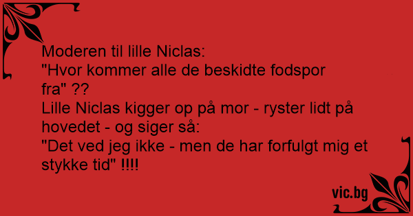 Lille Niclas kigger op på mor - ryster lidt på hovedet - og siger så:
