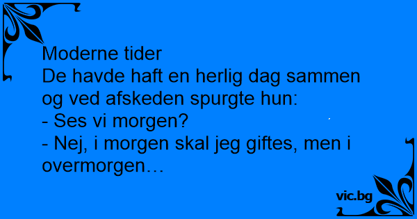 - Nej, i morgen skal jeg giftes, men i overmorgen…