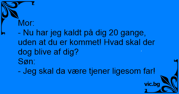 - Nu har jeg kaldt på dig 20 gange, uden at du er kommet! Hvad skal der dog blive af dig?