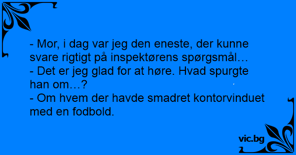 - Mor, i dag var jeg den eneste, der kunne svare rigtigt på inspektørens spørgsmål…