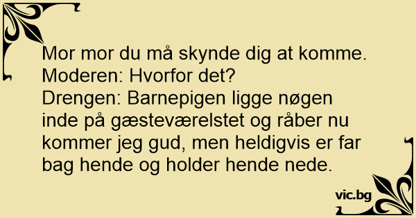 Drengen: Barnepigen ligge nøgen inde på gæsteværelstet og råber nu kommer jeg gud, men heldigvis er far bag hende og holder hende nede.