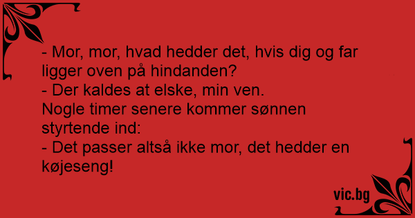 - Mor, mor, hvad hedder det, hvis dig og far liggеr oven på hindanden?