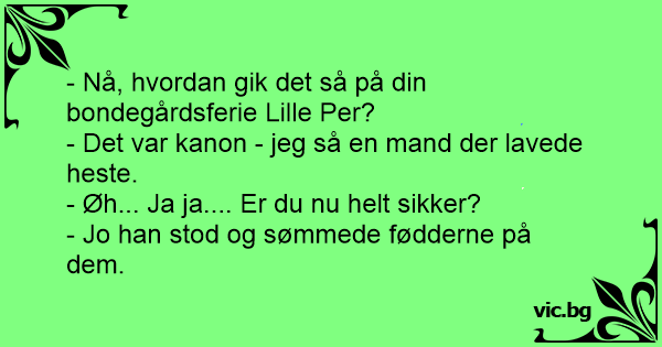 - Nå, hvordan gik det så på din bondegårdsferie Lille Per?