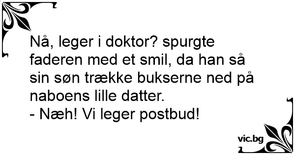 Nå, leger i doktor? spurgte faderen med et smil, da han så sin søn trække bukserne ned på naboens lille datter.