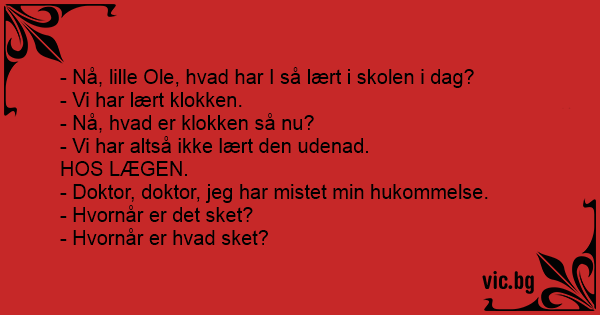 - Doktor, doktor, jeg har mistet min hukommelse.