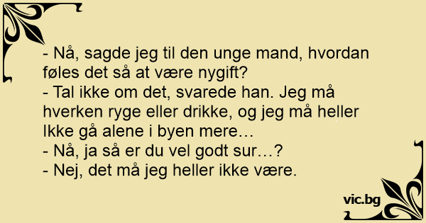 - Nå, sagde jeg til den unge mand, hvordan føles det så at være nygift?