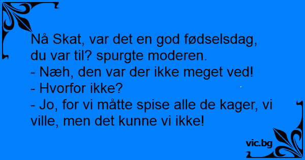 Nå Skat, var det en god fødselsdag, du var til? spurgte moderen.