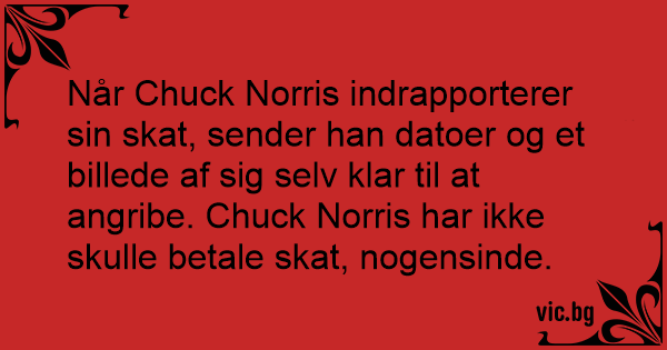 Når Chuck Norris indrapporterer sin skat, sender han datoer og et billede af sig selv klar til at angribe. Chuck Norris har ikke skulle betale skat, nogensinde.