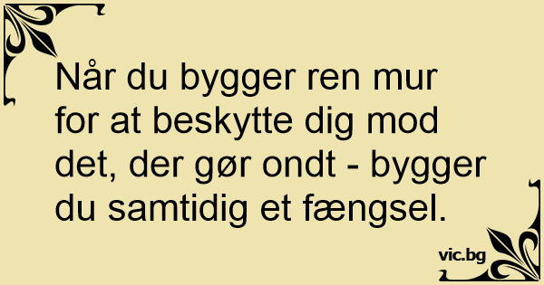 Når du bygger ren mur for at beskytte dig mod det, der gør ondt - bygger du samtidig et fængsel.
