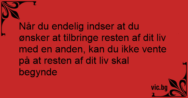 Når du endelig indser at du ønsker at tilbringe resten af dit liv med en anden, kan du ikke vente på at resten af dit liv skal begynde