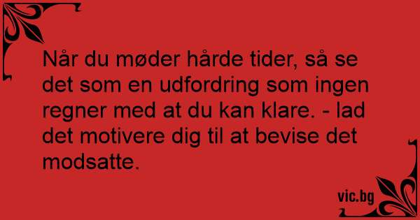 Når du møder hårde tider, så se det som en udfordring som ingen regner med at du kan klare. - lad det motivere dig til at bevise det modsatte.