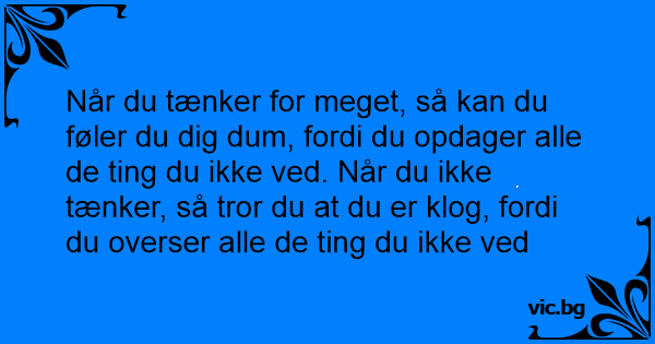 Når du tænker for meget, så kan du føler du dig dum, fordi du opdager alle de ting du ikke ved. Når du ikke tænker, så tror du at du er klog, fordi du overser alle de ting du ikke ved