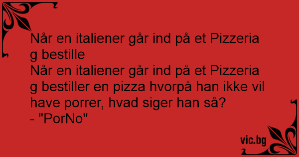 Når en italiener går ind på et Pizzeria g bestiller en pizza hvorpå han ikke vil have porrer, hvad siger han så?