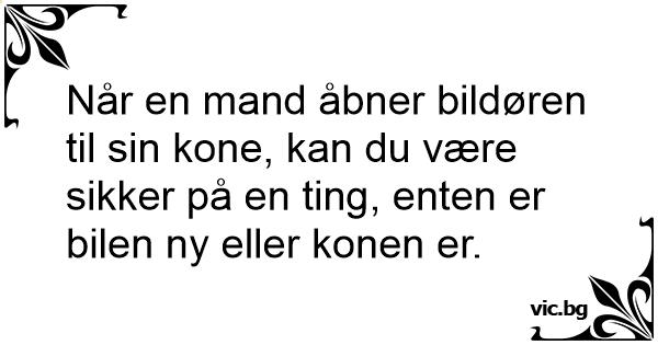 Hvad kan man konstatere, hvis en mand åbner bildøren for sin kone? - At enten er konen ny eller også er bilen...