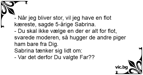 - Du skal ikke vælge en der er alt for flot, svarede moderen, så hugger de andre piger ham bare fra Dig.