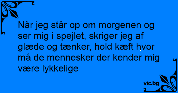 Når jeg står op om morgenen og ser mig i spejlet, skriger jeg af glæde og tænker, hold kæft hvor må de mennesker der kender mig være lykkelige