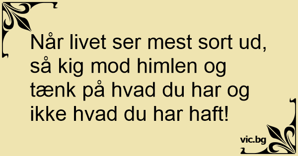 Når livet ser mest sort ud, så kig mod himlen og tænk på hvad du har og ikke hvad du har haft!