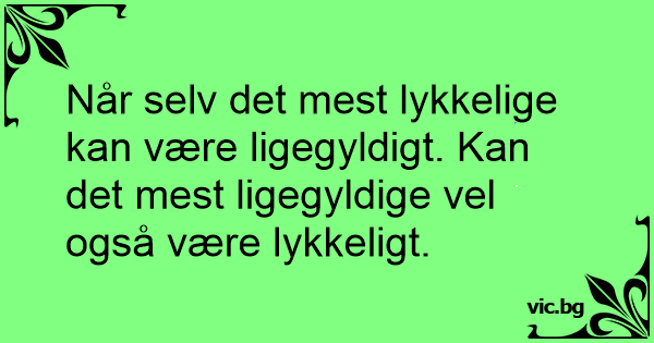 Når selv det mest lykkelige kan være ligegyldigt. Kan det mest ligegyldige vel også være lykkeligt.