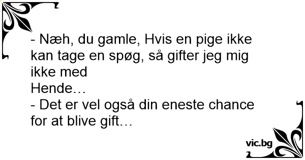 - Næh, du gamle, Hvis en pige ikke kan tage en spøg, så gifter jeg mig ikke med