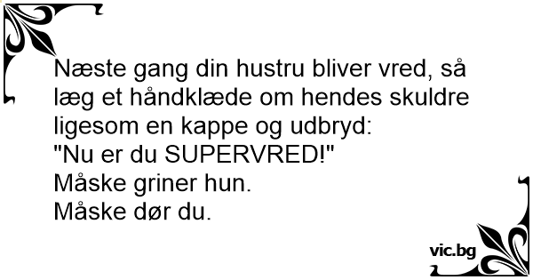 Næste gang din hustru bliver vred, så læg et håndklæde om hendes skuldre ligesom en kappe og udbryd:
