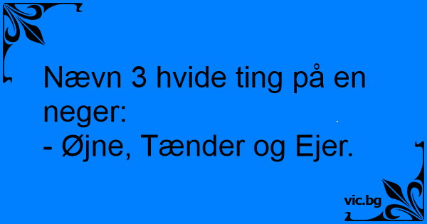 Избройте три бели неща, които има един негър? Очи, длани, собственик