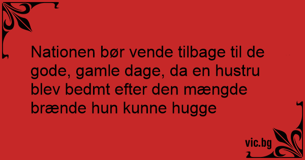 Nationen bør vende tilbage til de gode, gamle dage, da en hustru blev bedmt efter den mængde brænde hun kunne hugge