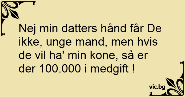 Nej min datters hånd får De ikke, unge mand, men hvis de vil ha' min kone, så er der 100.000 i medgift !