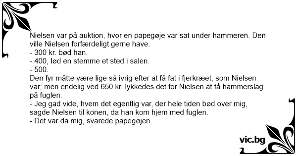 Nielsen var på auktion, hvor en papegøje var sat under hammeren. Den ville Nielsen forfærdeligt gerne have.
