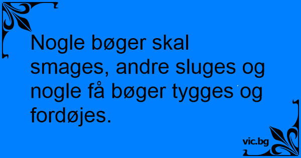 Nogle bøger skal smages, andre sluges og nogle få bøger tygges og fordøjes.