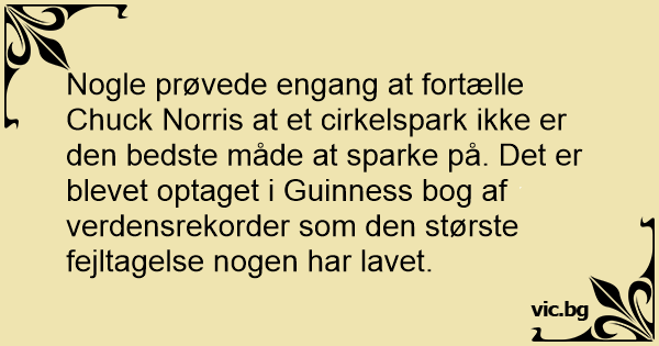 Nogle prøvede engang at fortælle Chuck Norris at et cirkelspark ikke er den bedste måde at sparke på. Det er blevet optaget i Guinness bog af verdensrekorder som den største fejltagelse nogen har lavet.