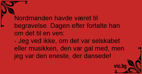 Nordmanden havde været til begravelse. Dagen efter fortalte han om det til en ven: