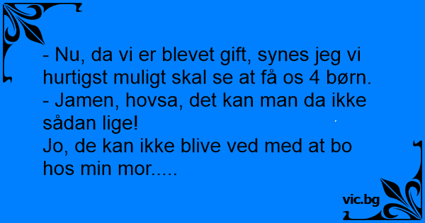 - Nu, da vi er blevet gift, synes jeg vi hurtigst muligt skal se at få os 4 børn.