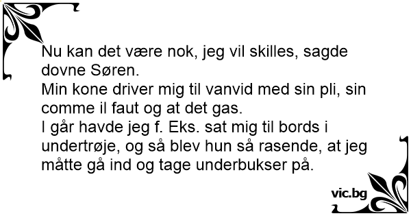 Nu kan det være nok, jeg vil skilles, sagde dovne Søren.