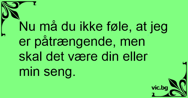 Nu må du ikke føle, at jeg er påtrængende, men skal det være din eller min seng.