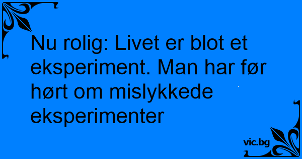 Nu rolig: Livet er blot et eksperiment. Man har før hørt om mislykkede eksperimenter