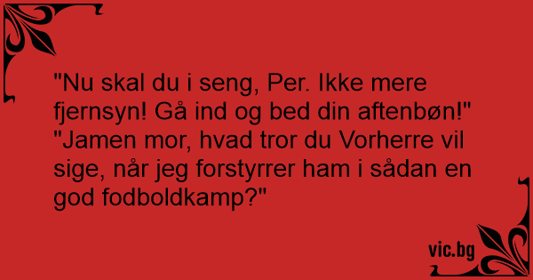 "Jamen mor, hvad tror du Vorherre vil sige, når jeg forstyrrer ham i sådan en god fodboldkamp?"