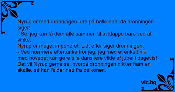 Det vil Nyrup gerne se, hvorpå dronningen niккеr ham en skalle, så han falder ned fra balkonen.