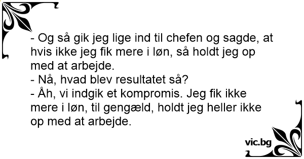 - Åh, vi indgik et kompromis. Jeg fik ikke mere i løn, til gengæld, holdt jeg heller ikke op med at arbejde.