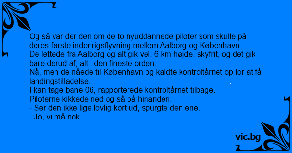 Og så var der den om de to nyuddannede piloter som skulle på deres første indenrigsflyvning mellem Aalborg og København.