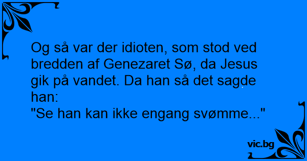 Og så var der idioten, som stod ved bredden af Genezaret Sø, da Jesus gik på vandet. Da han så det sagde han: