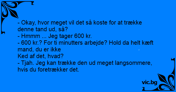 - Okay, hvor meget vil det så koste for at trække denne tand ud, så?