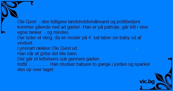 Ole Qvist - den tidligere landsholdsmålmand og politibetjent kommer gående ned ad gaden. Han er på patrulje, går lidt i sine egne tanker - og mindes.