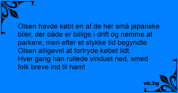 Olsen havde købt en af de her små japanske biler, der både er billige i drift og nemme at parkere, men efter et stykke tid begyndte Olsen alligevel at fortryde købet lidt.