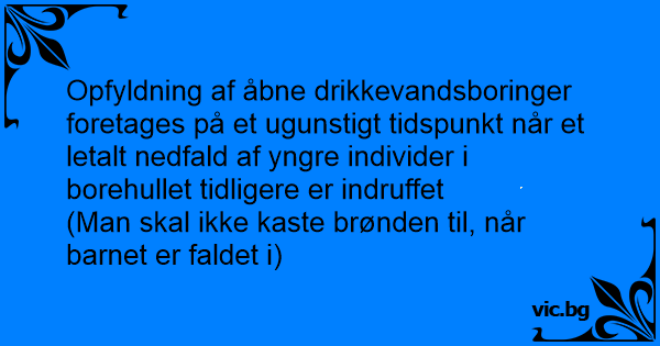 (Man skal ikke kaste brønden til, når barnet er faldet i)