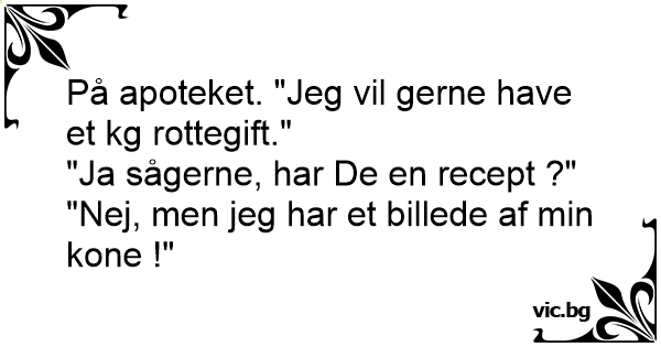På apoteket. "Jeg vil gerne have et kg rottegift."
