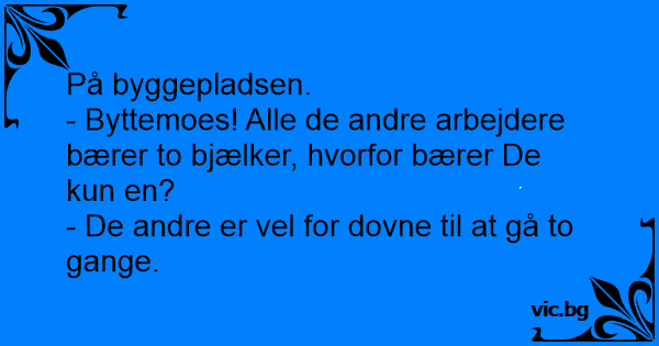 - Byttemoes! Alle de andre arbejdere bærer to bjælker, hvorfor bærer De kun en?